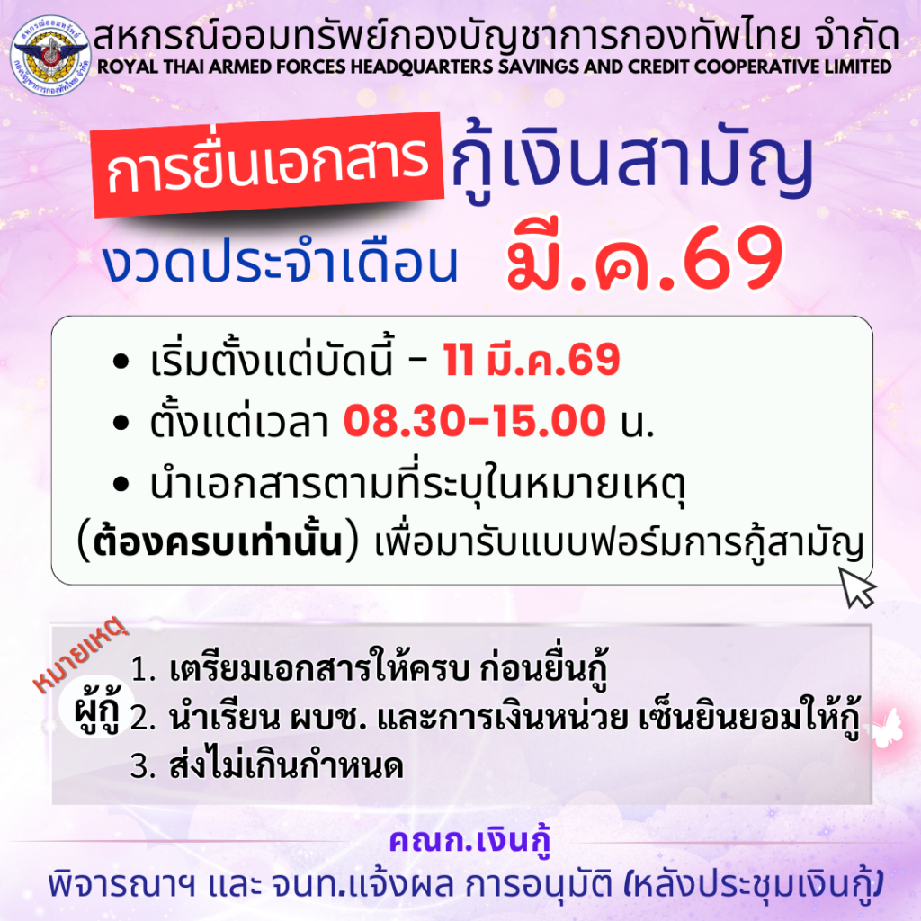 | เงินกู้สามัญ(โครงการปรับฐานเงินเดือน) | 5.2% ต่อปี |