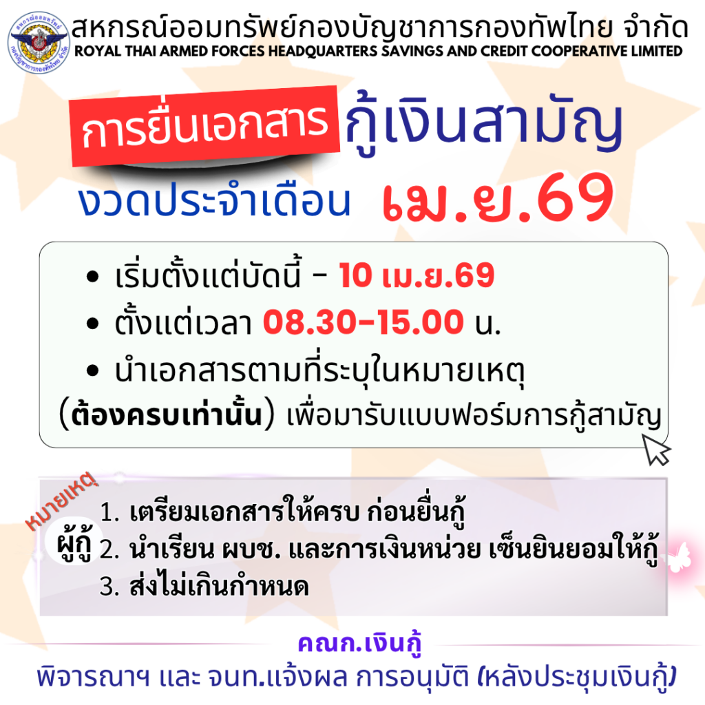 | เงินกู้สามัญ(โครงการปรับฐานเงินเดือน) | 5.2% ต่อปี |