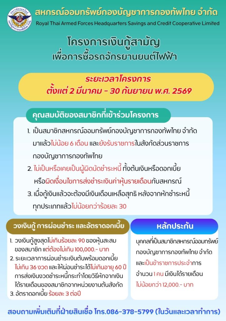 | เงินกู้สามัญไม่เกิน 90% ของเงินฝาก | 5.2% ต่อปี |