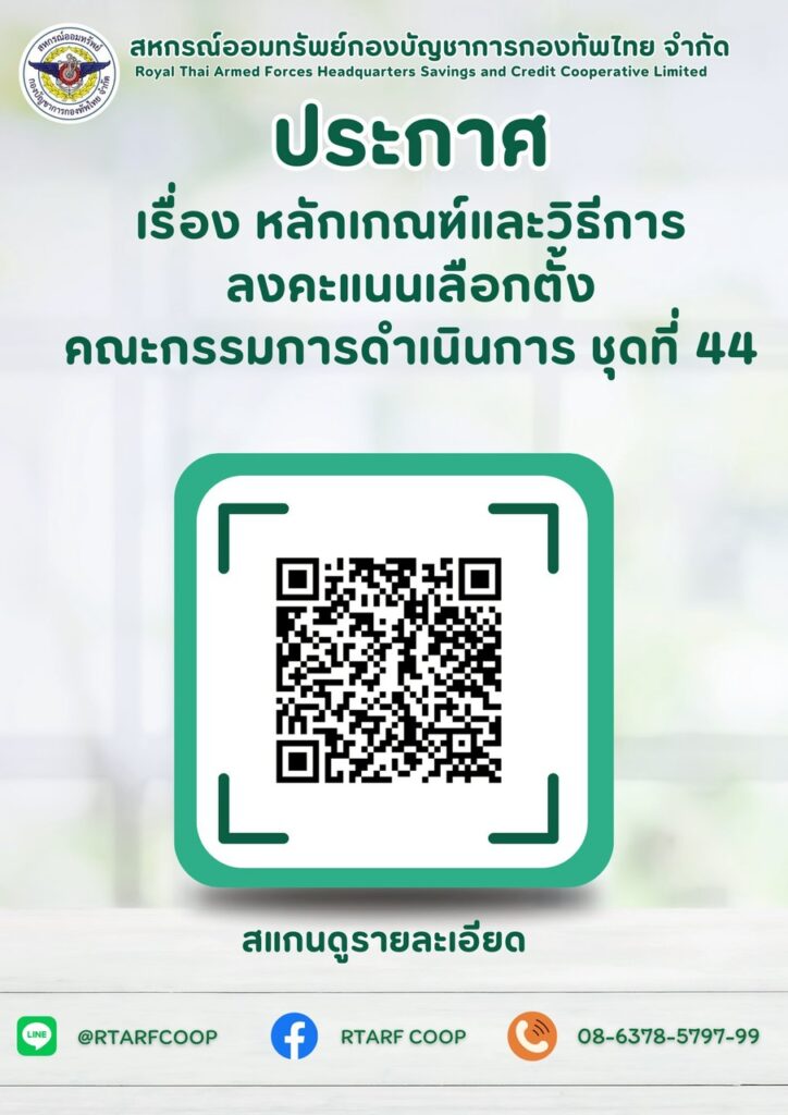 ประกาศ สหกรณ์ออมทรัพย์กองบัญชาการกองทัพไทย จำกัด เรื่อง หลักเกณฑ์และวิธีการลงคะแนนเลือกตั้งคณะกรรมการดำเนินการ ชุดที่ 44